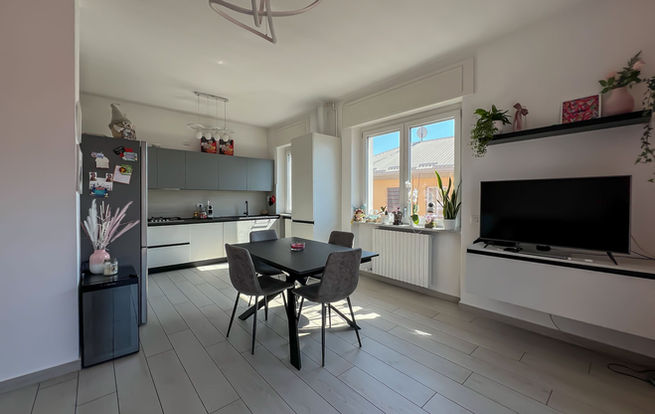 INGRESSO, SOGGIORNO CUCINA A VISTA, DISIMPEGNO, CAMERA MATRIMONIALE E BAGNO